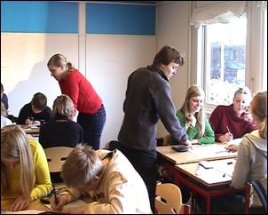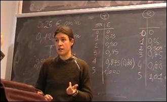 The number of teacher training students is 25. They study in the third year at Skårup Seminarium to become teachers. One teacher trainee has prepared an introduction to mobile phone prices, on subscriptions, on voice charges and on text messages. This introduction lasts the whole lesson.