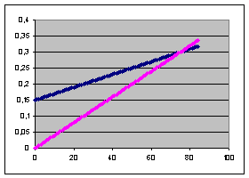 This first phase lasts for about 35 minutes. The first discussions are about the meaning of the verb «to compare», use of graph paper, choice of magnitudes, of units and graphs. Systematically all the pupils use their calculators. The meaning of operations and results is discussed, particularly the use of approximate calculus, and for some groups proportional processing, or not, to calculate the price of David’s and Simon’s telephone usage.
